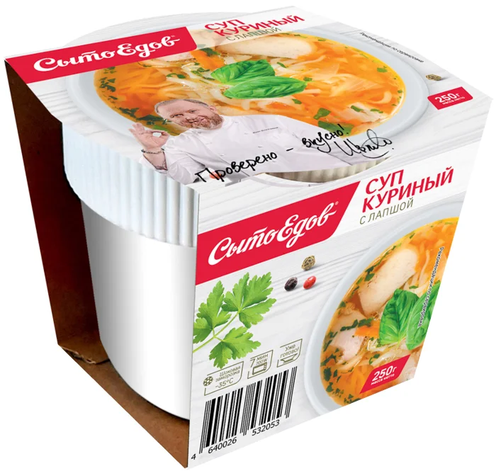 Суп куриный с лапшой 250г, стакан, Сытоедов /9шт/