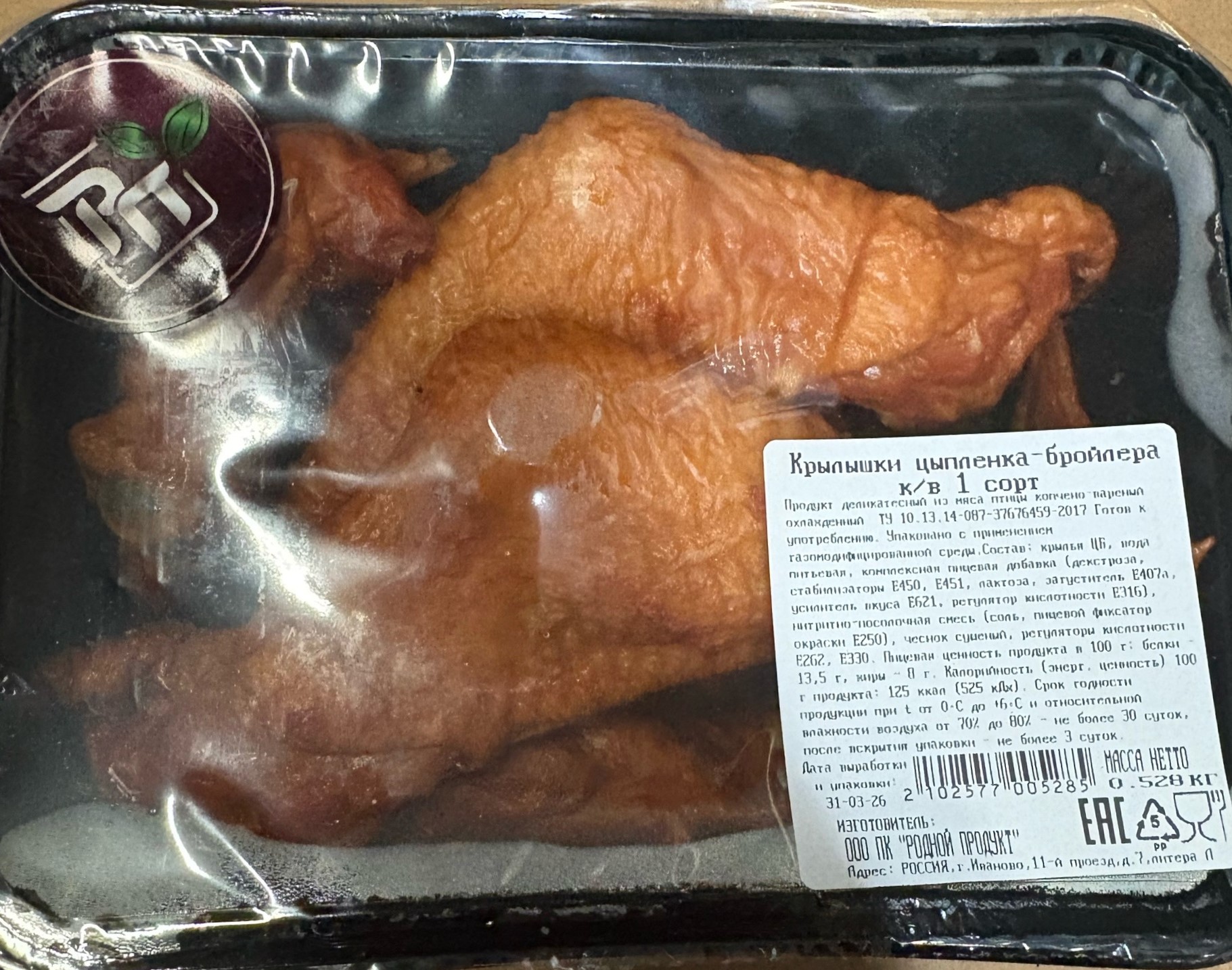 Крылышки цыплёнка-бройлера в/к ЛОТОК в/у ~500г кг