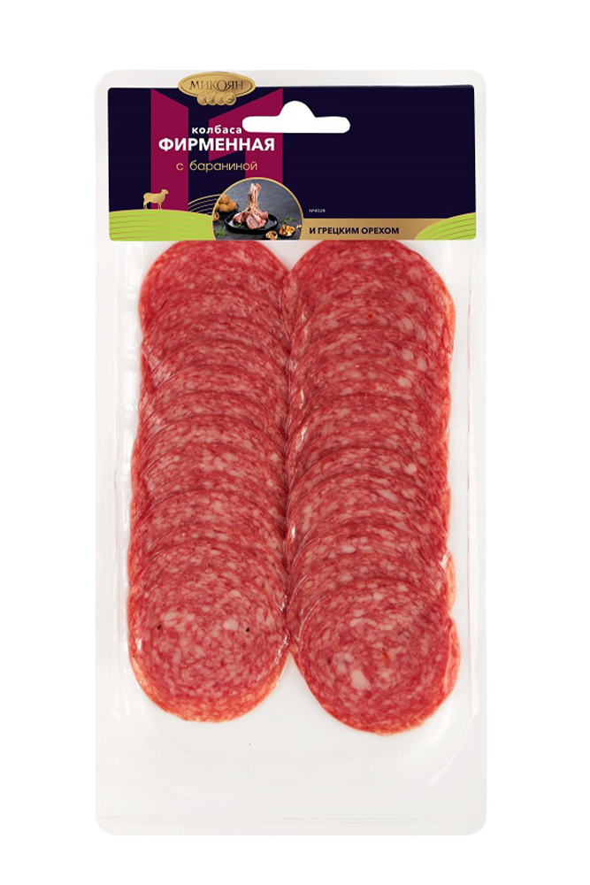 Фирменная с бараниной и грецким орехом с/к п/с 80г в/у нарезка (Микояновский МК)