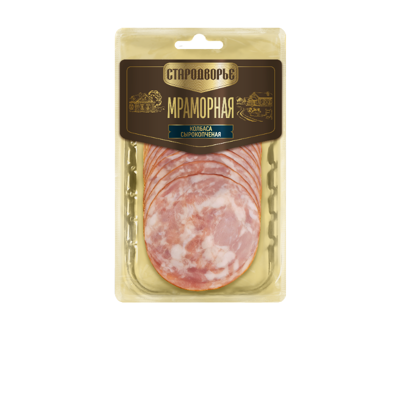 Мраморная колбаса с/к нарезка 70гр./18шт/(Стародворье)