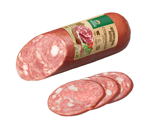 Сервелат с говядиной, срез, в/у 300г /16шт/ Село Зелёное