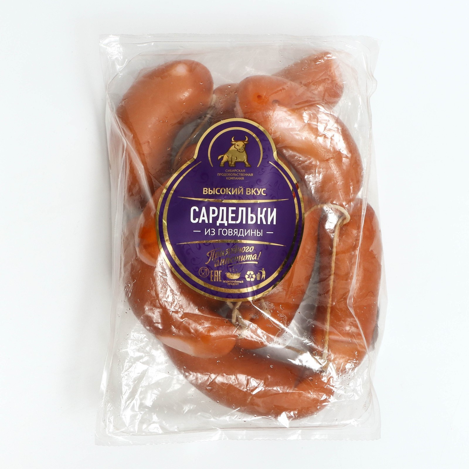 Сардельки с говядиной (черева)"Высокий вкус",газ (Прод.сиб.комп.) кг