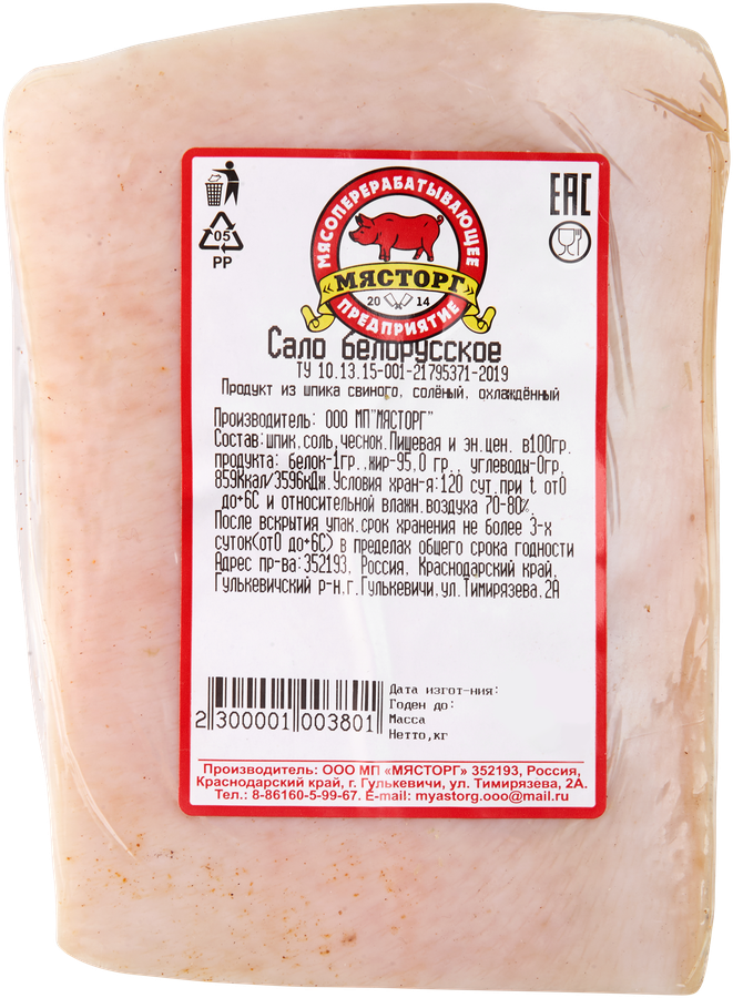 Сало белорусское, в/у (зеленый чеснок) (Мясторг) кг