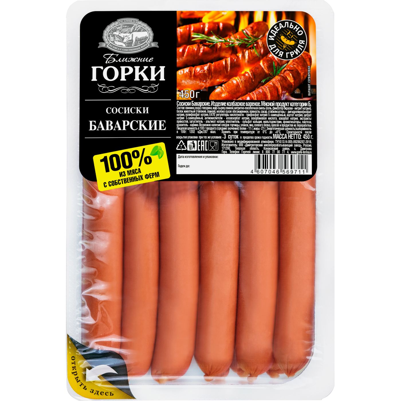 Баварские сосиски в б/о 450г, газ "Ближние Горки"/6шт/(Дмитрогорский МЗ)