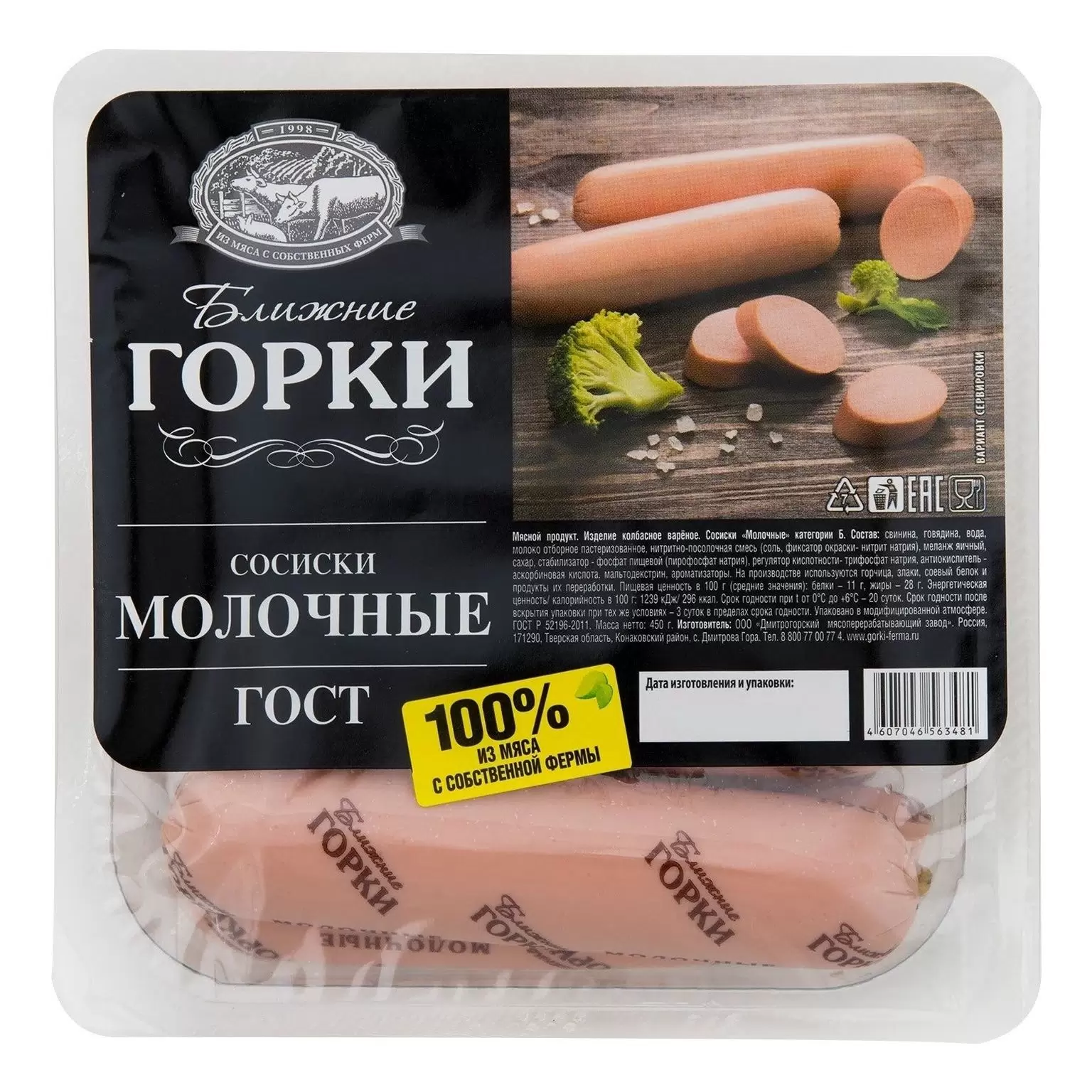 Молочные ГОСТ сосиски в ц/о 450г, газ "Ближние Горки"/6шт/(Дмитрогорский МЗ)