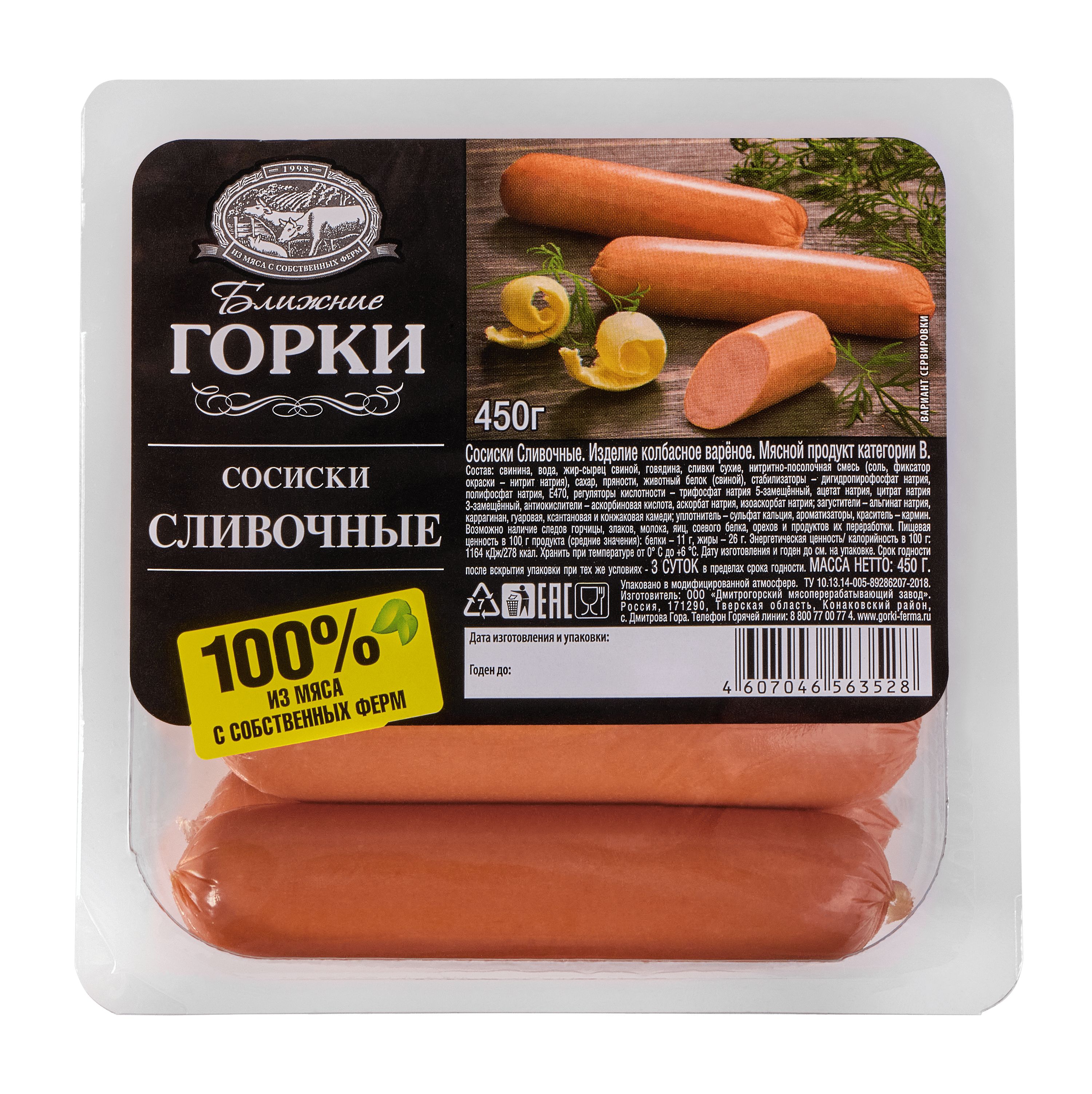 Сливочные сосиски в ц/о 450г, газ "Ближние Горки"/6шт/(Дмитрогорский МЗ)