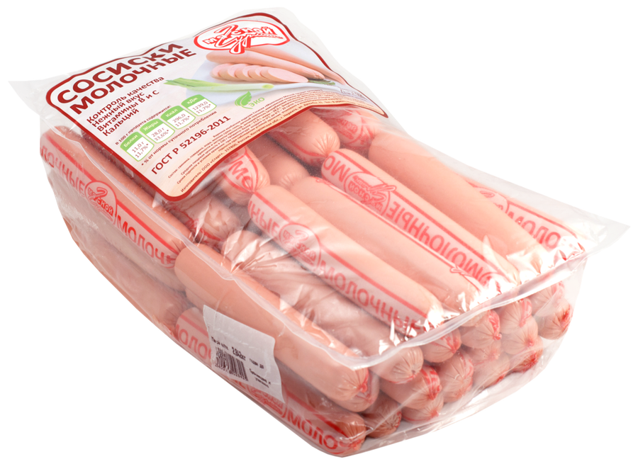 Молочные сосиски целлофан, газ/1кг/ "Мясной гурман"