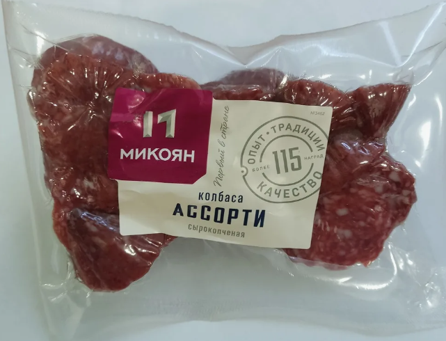 Ассорти с/к полусухое в/у нарезка(кусочки)`300гр(Микоян)кг