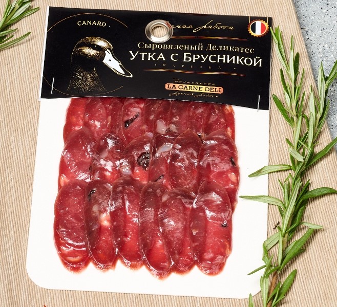 Фуэт Утка с брусникой колбаса нарезка 50г /10шт/ (ООО "Валентина")