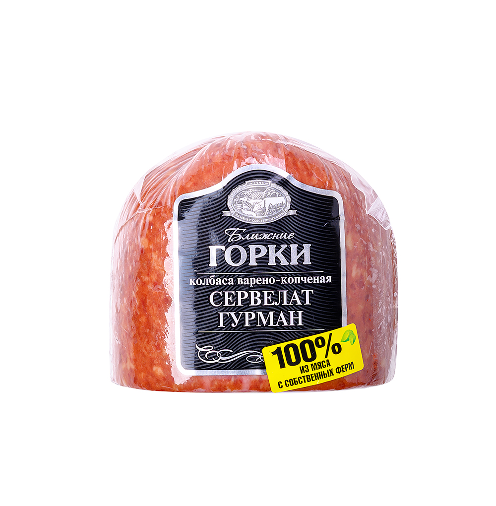 Сервелат Гурман в/к в/у, пресс кусок 500г "Ближние Горки"/6шт/(Дмитрогорский МЗ)***