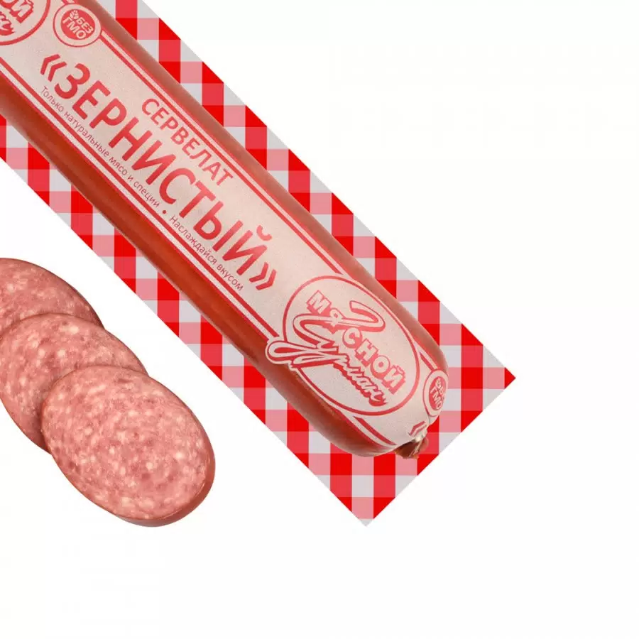 Сервелат Зернистый в/к кат В в/у ~600гр(Мясной Гурман)кг