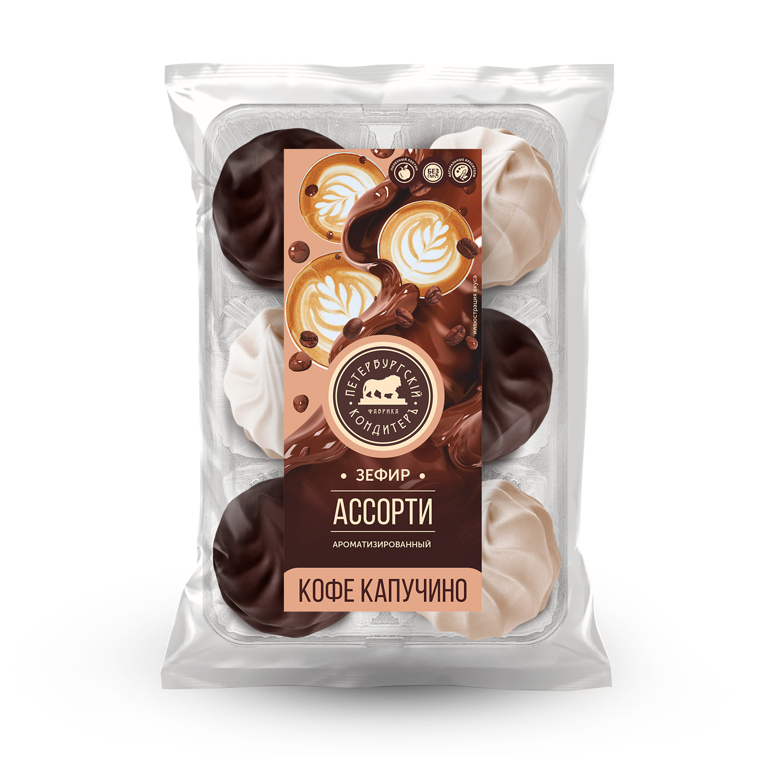 Зефир "Ассорти кофе капучино" в глазури ароматизированный 350г /12шт/ (Петербургский КондитерЪ)