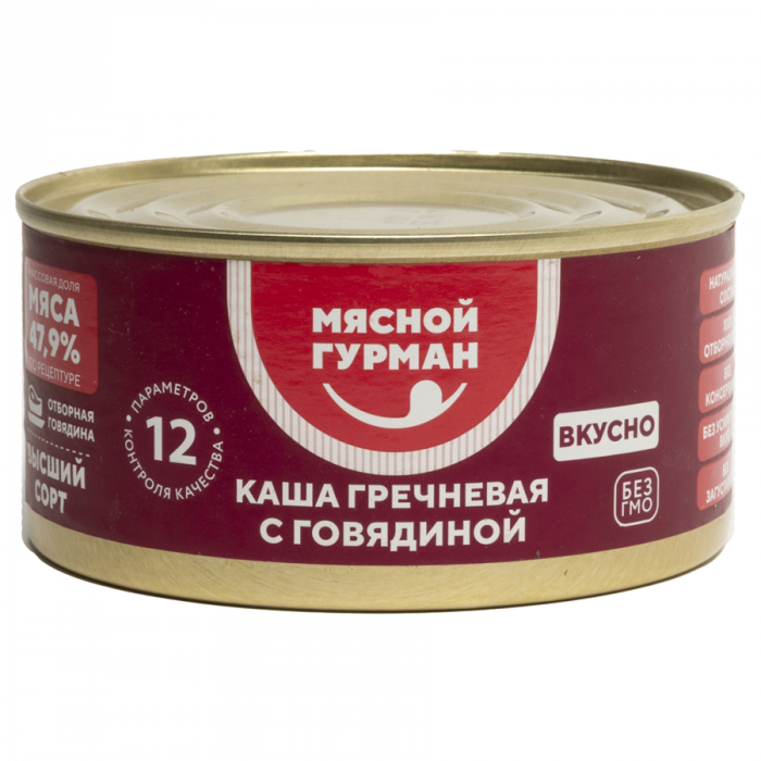Каша гречневая с говядиной 325г ГОСТ "Мясной гурман" /12шт/