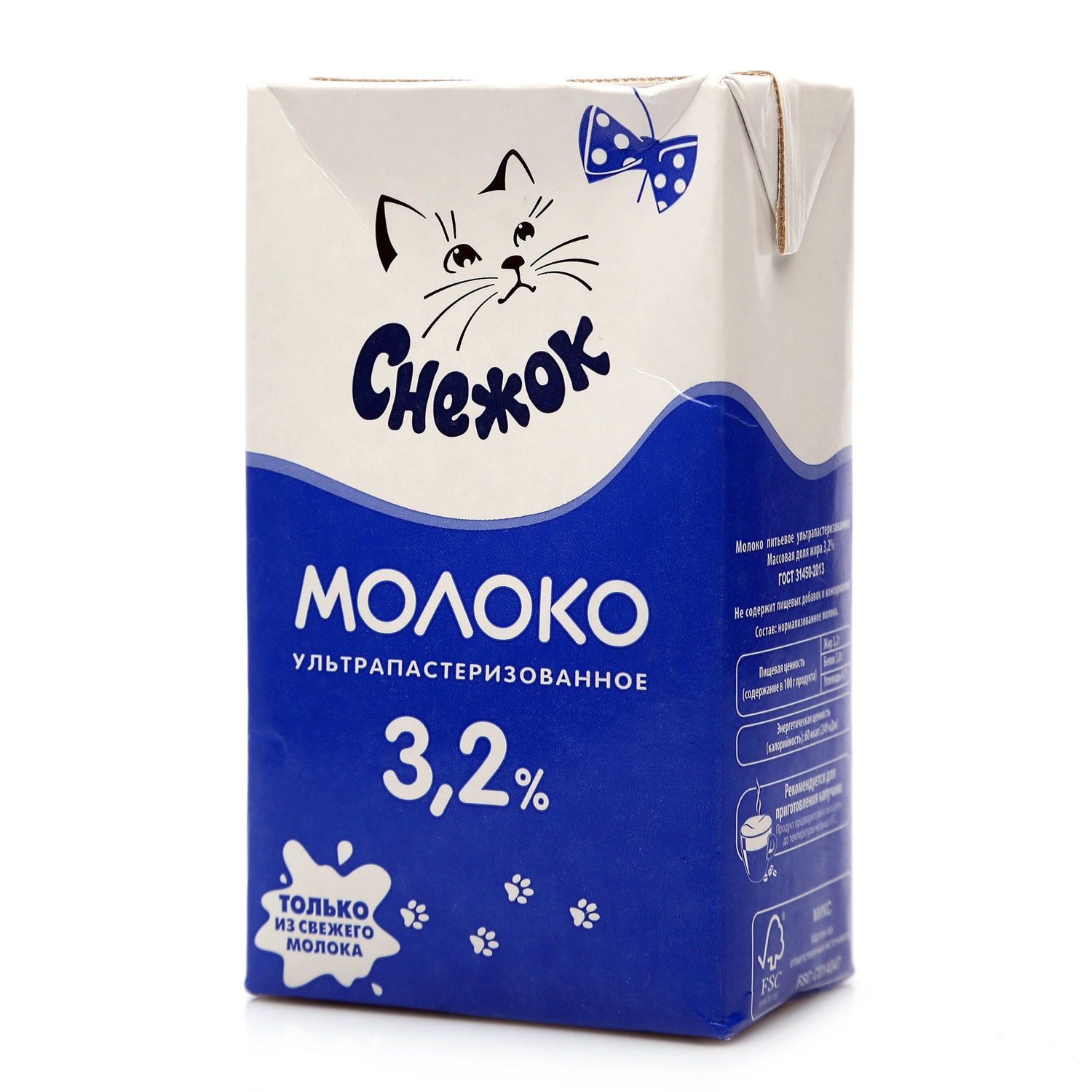Молоко у/паст. 3,2% 1л. TBA Sq "Снежок" /12шт/