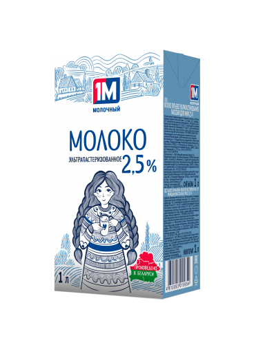 Молоко у/паст 1 Молочный БЗМЖ т/б,1л,2,5%/12шт/Беларусь