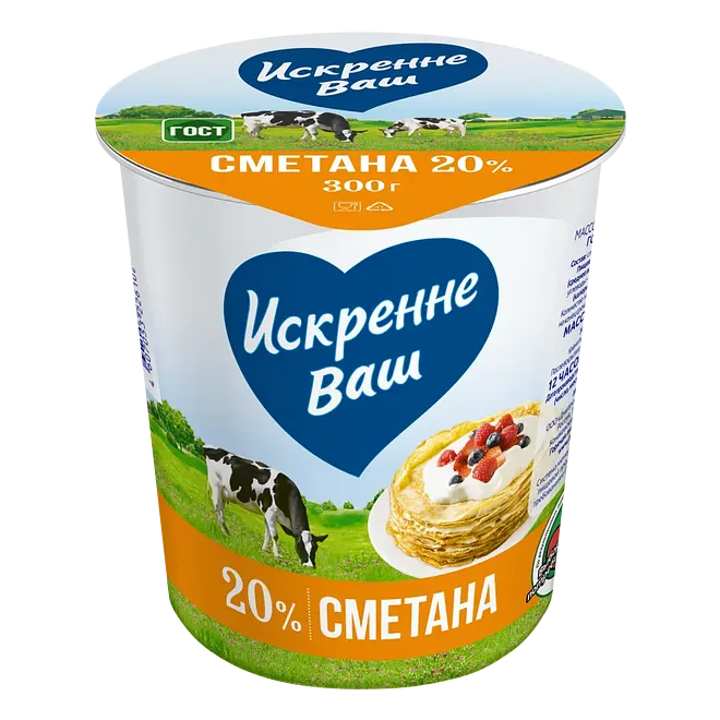 Сметана "Искренне Ваш" 20% 300г /6шт/