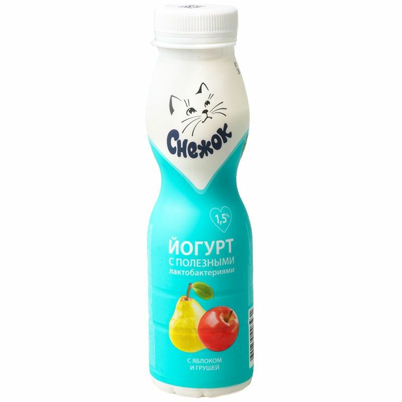 Йогурт пит.1,5% 260г,с яблоком и грушей пэт-бутылка "Снежок"/4шт/