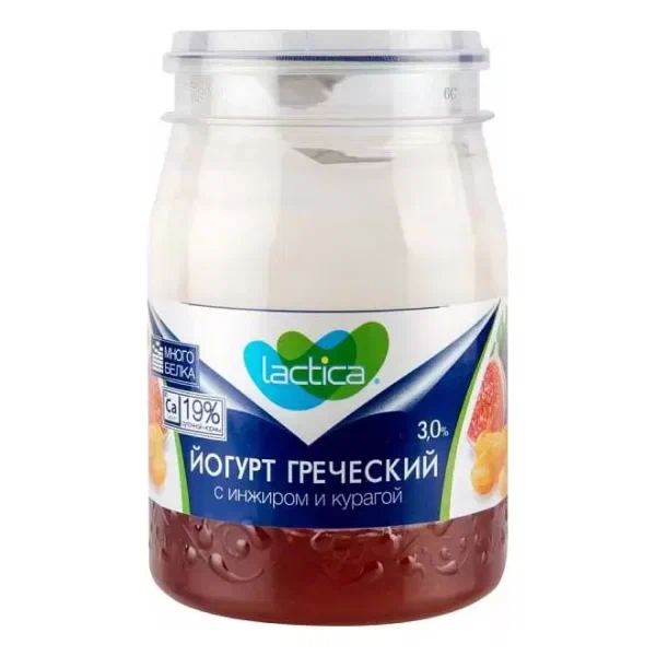 Йогурт греч 2-слойный 3,0% 190г с инжиром и курагой пэт-банка "Lactica"/6шт/