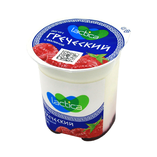 Йогурт греч 2-слойный 3,4% 120гр. с малиной тф-стакан /12шт/(Лактика)