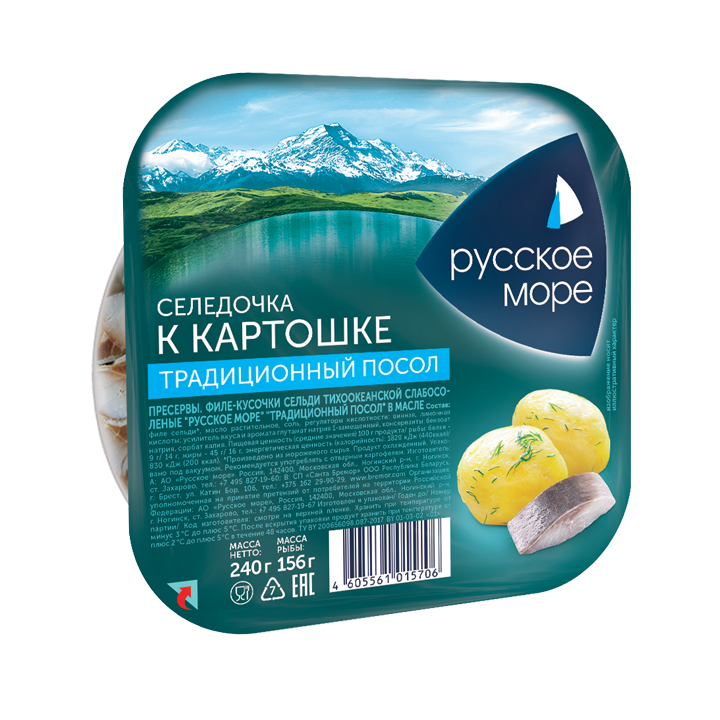 Филе-кусочки сельди 240г К Картошке тих/ок с/с "Русское море" традиц. посол в масле /8шт/
