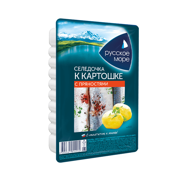 Филе селеди 400гр.Т/Ок.,с/с"Селёдочка к картошке" с пряностями в масле/6шт(Русское море)