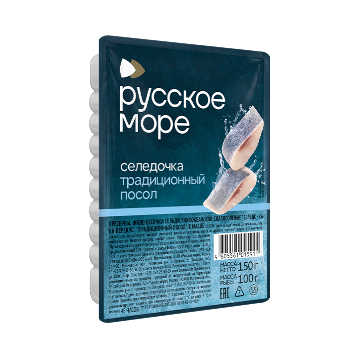Филе-кусочки сельди 150гр.Т/Ок,с/с "Селёдочка на перекус" трад. посол" в масле /10шт(Русское море)