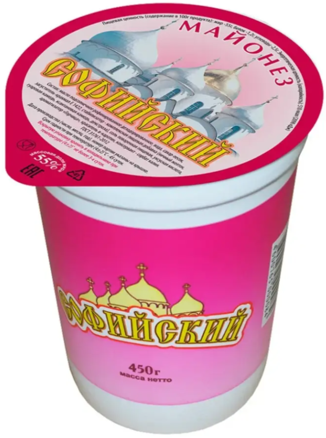 Майонез 55%, 450г пэт-стакан /12шт/ "Софийский"