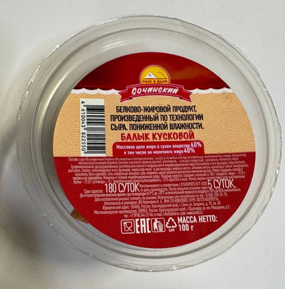 Сыр балык копчёный кусковой стакан 80гр./14шт/(Аграманян)