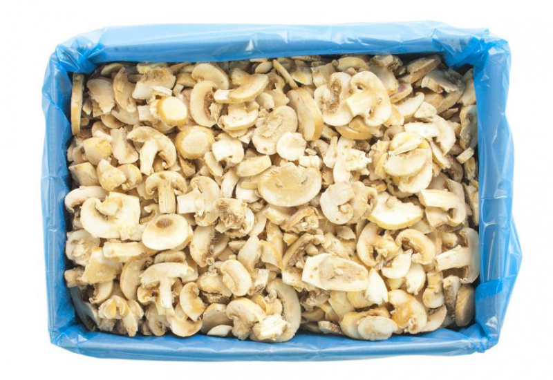 Шампиньоны резаные п/э пакет 1кг* 10 (РОССИЯ)