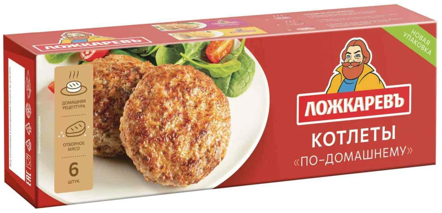 Котлеты Ложкарёвъ по-домашнему из отборной говядины 400гр./12шт/(Шельф)