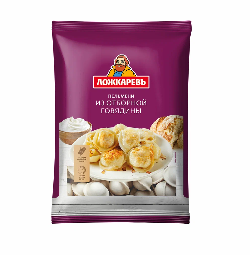 Пельмени Ложкарёвъ из отборной говядины 900гр /9шт/(Шельф)