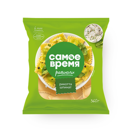 Равиоли с сыром Рикотта и шпинатом Самое время 360гр/10шт/(Русское море)