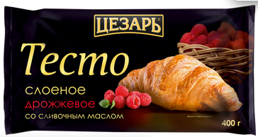 Тесто слоеное дрожжевое со сливочным маслом Цезарь 400г./12шт(Мороз