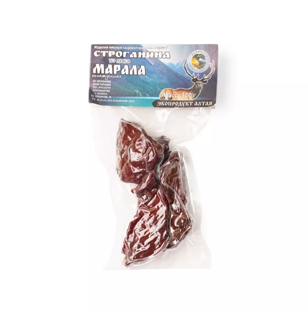 Строганина из мяса марала в/у 100гр.(ИП Шурмарова ЮЮ)