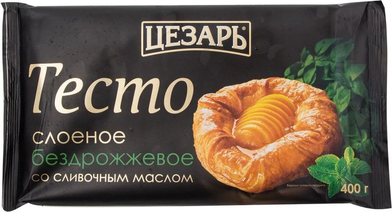 Тесто слоеное бездрожжевое со сливочным маслом Цезарь 400г./12шт(Мороз)