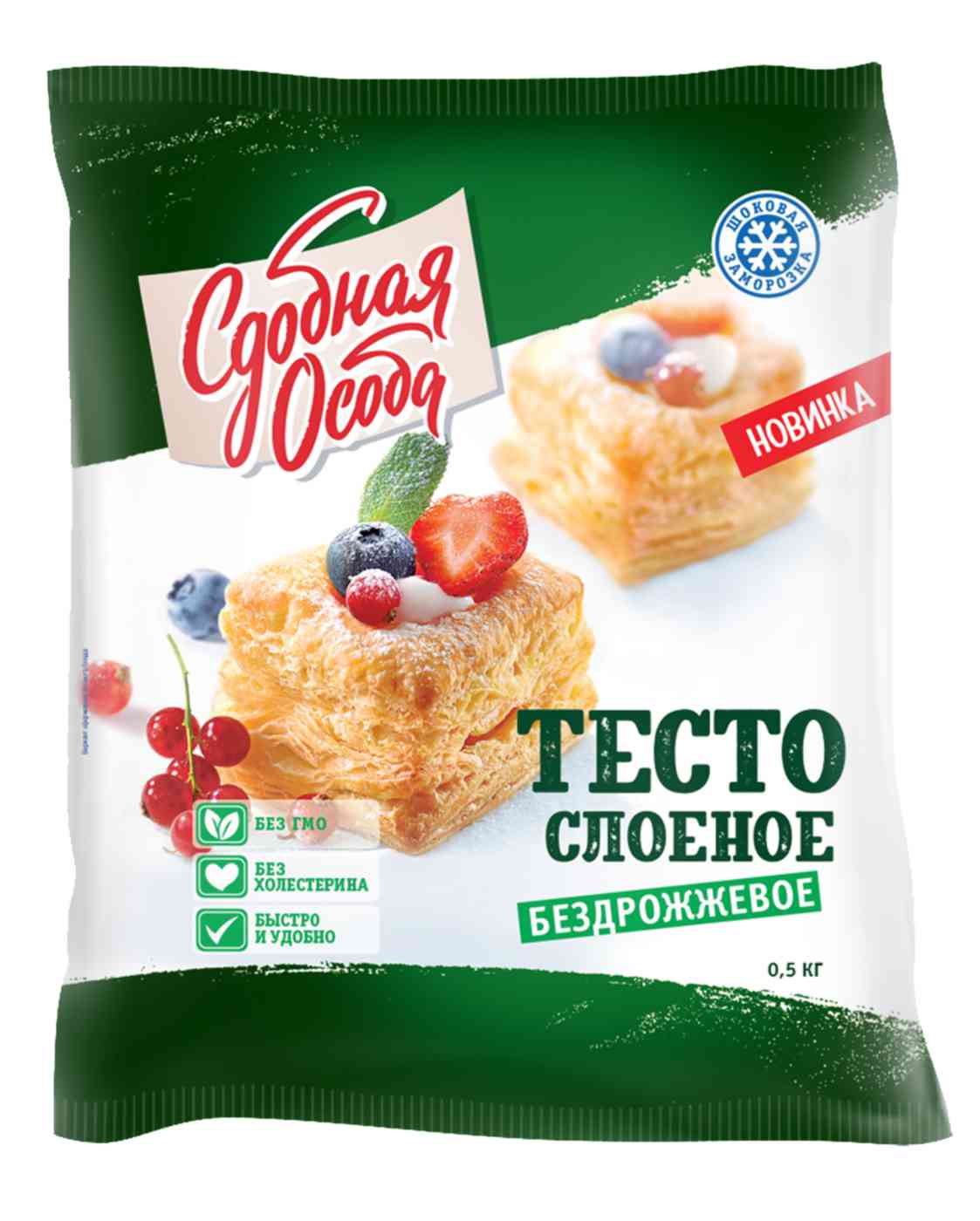 Тесто слоёное БЕЗдрожжевое 500г/16шт (КБК "Черёмушки") 5002